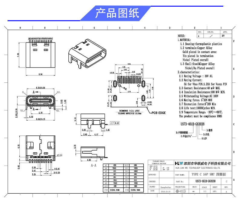 产品料号: U573-461B-G63038