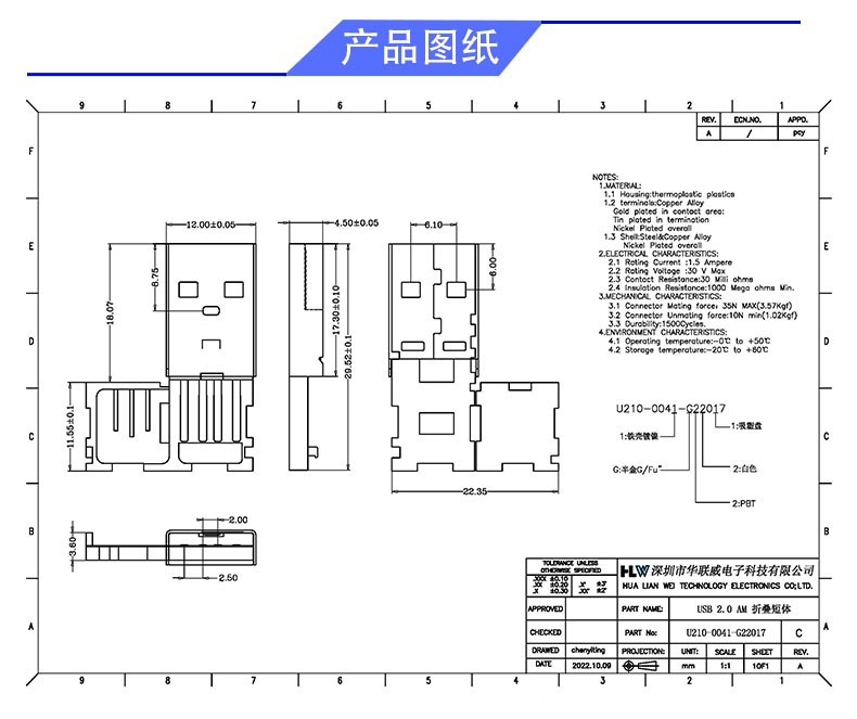 产品料号: U210-0041-G22017